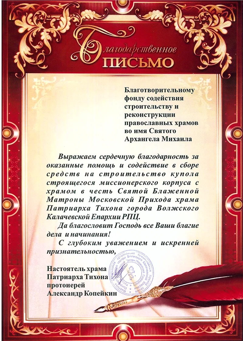 Мы внесли вклад в строительство крестильной церкви, чтобы малышей и взрослых крестили в тепле и уюте. Послужили блаженной Матроне и помогли жителям г. Волжский!