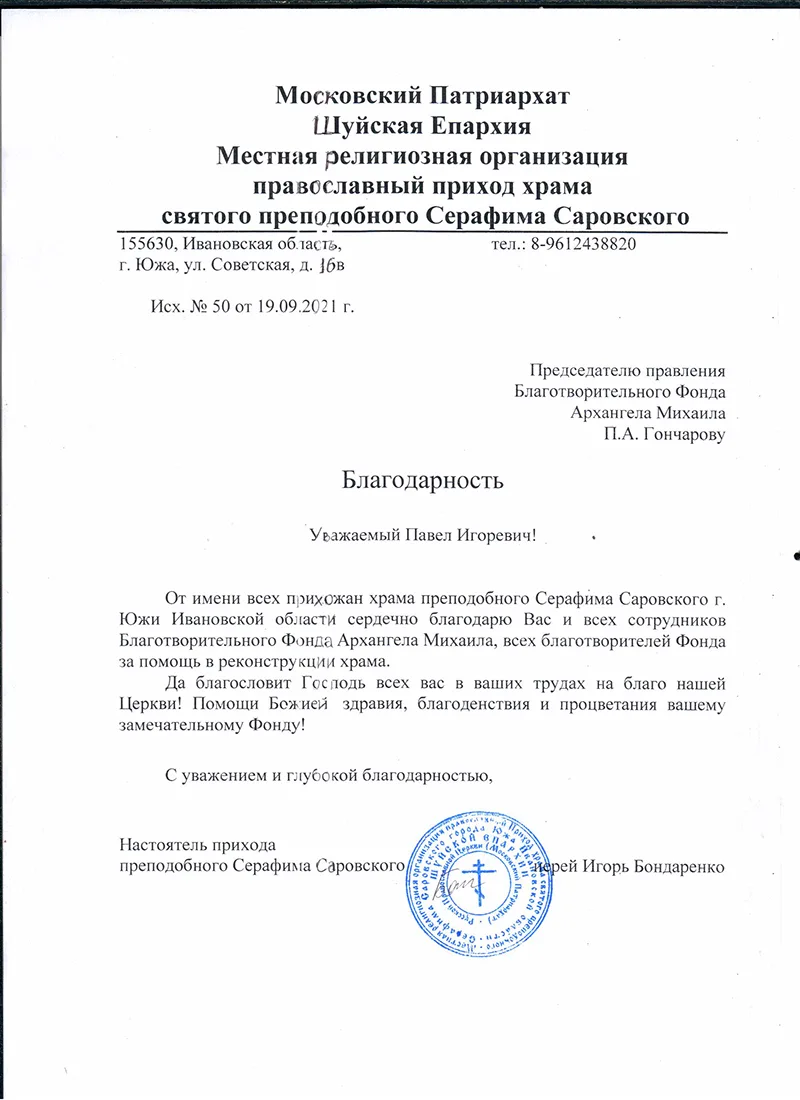 Подарим тепло прихожанам храма прп. Серафима Саровского в Юже!