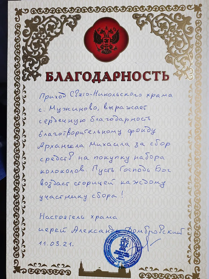 Да хранит Господь каждого, кто внес свою лепту в приобретение церковных колоколов!