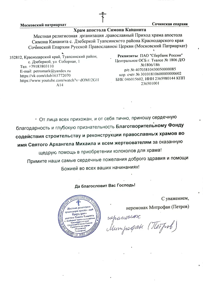 Мы с Вами собрали на колокола и помогли храму обрести свой голос!