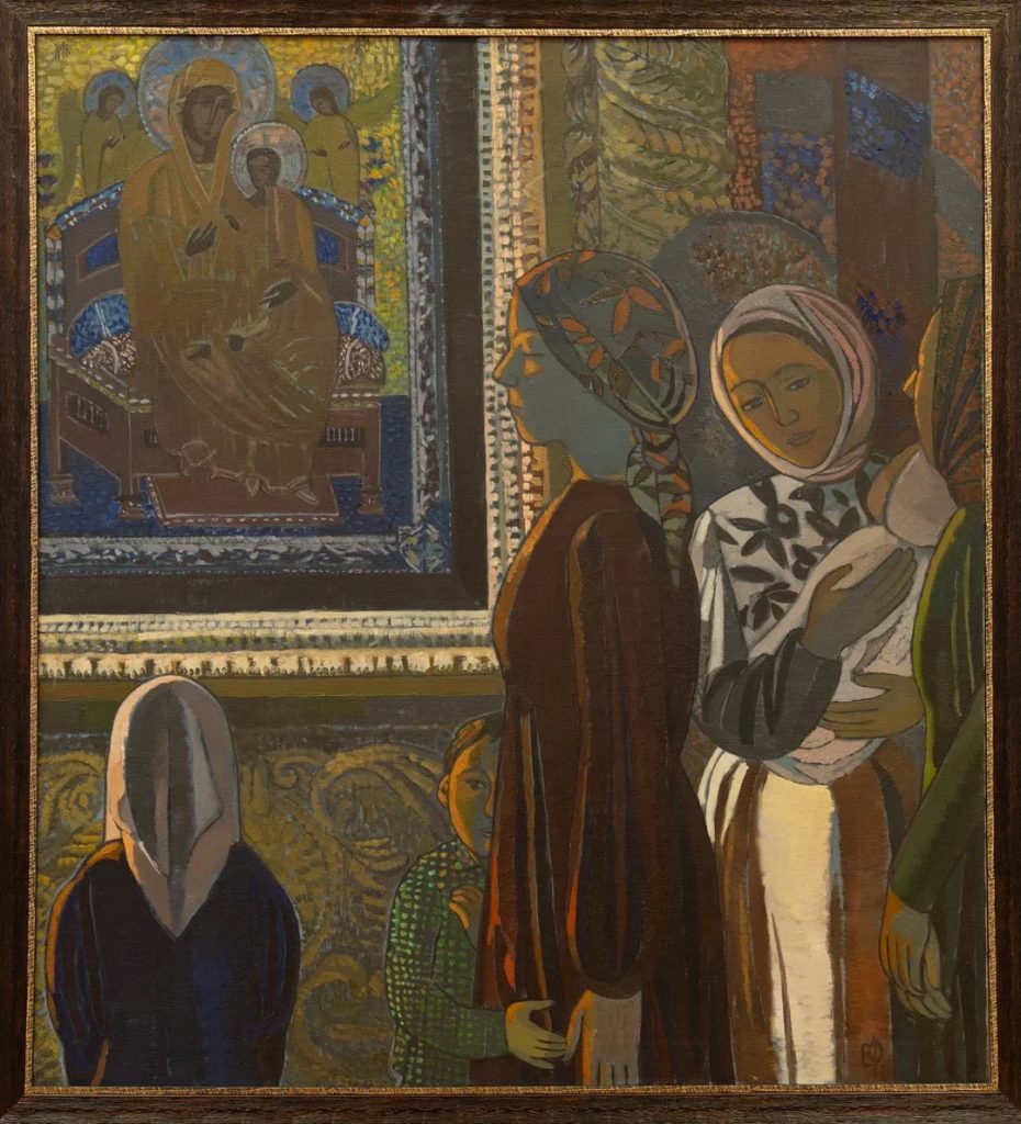 Полотна Евгении Филоненко особые – очень теплые, атмосферные, с сюжетами, которые заставляют задуматься. Практически на всех мы видим людей, и очень часто – детей. Картина Евгении с образом Пресвятой Богородицы «Всецарица» и молящимися перед ней людьми стала центральной на выставке. История ее появления едва ли не чудесна: сначала художница написала для экспозиции другую работу. А когда до времени сдачи полотен оставалось меньше месяца – родился замысел произведения, которое автор назвала «И девам Ликование, и матерям Отрада».
