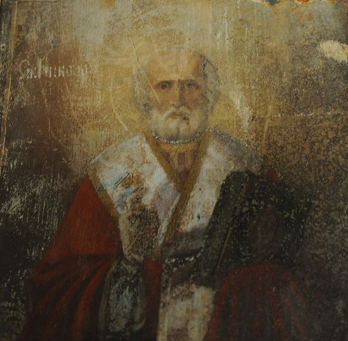 Совсем недавно, в 2016-м году, Господь даровал Великорецкому еще одну святыню! История ее обретения наводит на мысль об удивительном смирении нашего Господа и Его великого святителя. Изображение святителя Николая чудесным образом проявилось на ржавой железной пластине, которой закрывали техническое окно в коровник! Чудо произошло в зимний праздник Святителя Николая 19 декабря 2016 года – в день, когда совершилась первая после почти столетнего запустения служба в Никольском соборе Великорецкого подворья. Днем 21 декабря братия пришли к коровнику на работу и обнаружили, что на металле появился лик святителя – тоненький слой краски.