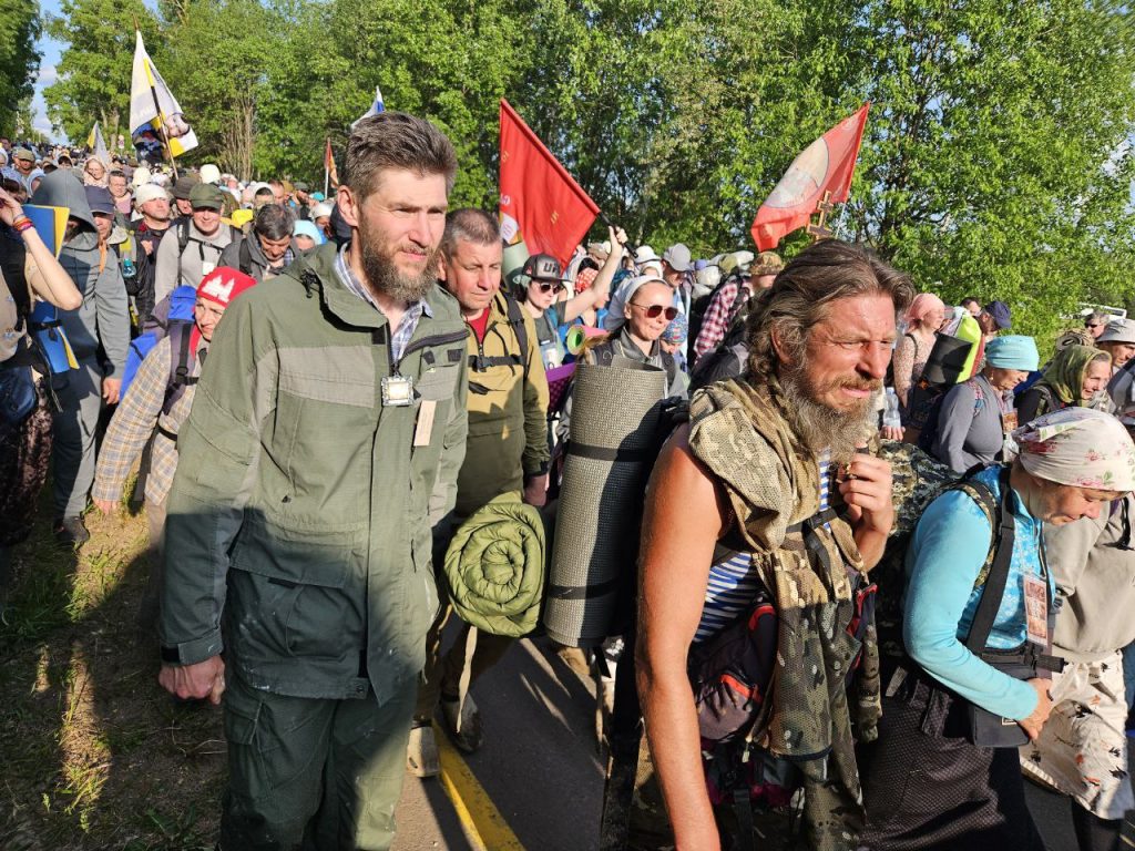 Многие отправляются в путь приходами, во главе со священниками. На палаточных городках, установленных крестоходцами по всему Великорецкому и в лесу вокруг него, видны флаги и таблички: «Приход Троицкого храма пос. Верхошижемье», «Приход храма Сорока мучеников Севастийских»…