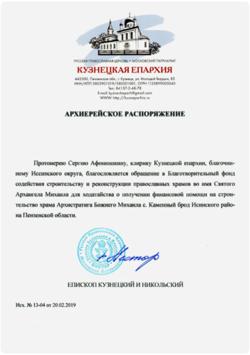 БЛАГОТВОРИТЕЛЬНЫЙ ФОНД СОДЕЙСТВИЯ СТРОИТЕЛЬСТВУ И РЕКОНСТРУКЦИИ ХРАМОВ ВО ИМЯ СВЯТОГО АРХАНГЕЛА МИХАИЛА