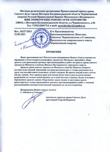 Храм Архангела Михаила в поселке Невское – очаг Православия в самом западном регионе России, Калининградской области. Жизнь его непроста: малочисленный приход с трудом справляется с эксплуатацией старинного здания. Необходима большая реставрация, чтобы привести святыню в должный вид. Добрые люди, которых привлек и объединил наш фонд, оказали важную помощь, чтобы спасти храм от разрушения. Слава Богу! Да благословит Господь всех, кто не остался равнодушным к судьбе храма!