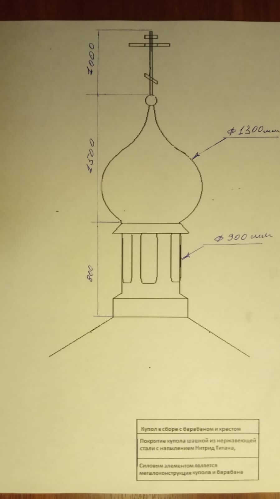 Главка эта будет изготовлена из стеклопластика – прочного, легкого и красивого материала. По внешнему виду она подобна медной, покрытой сусальным золотом, но обходится значительно дешевле.