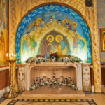 Верхний храм, освященный в честь Покрова Пресвятой Богородицы, украшен великолепными мозаиками в византийском стиле, площадь которых составляет 2500 квадратных метров.