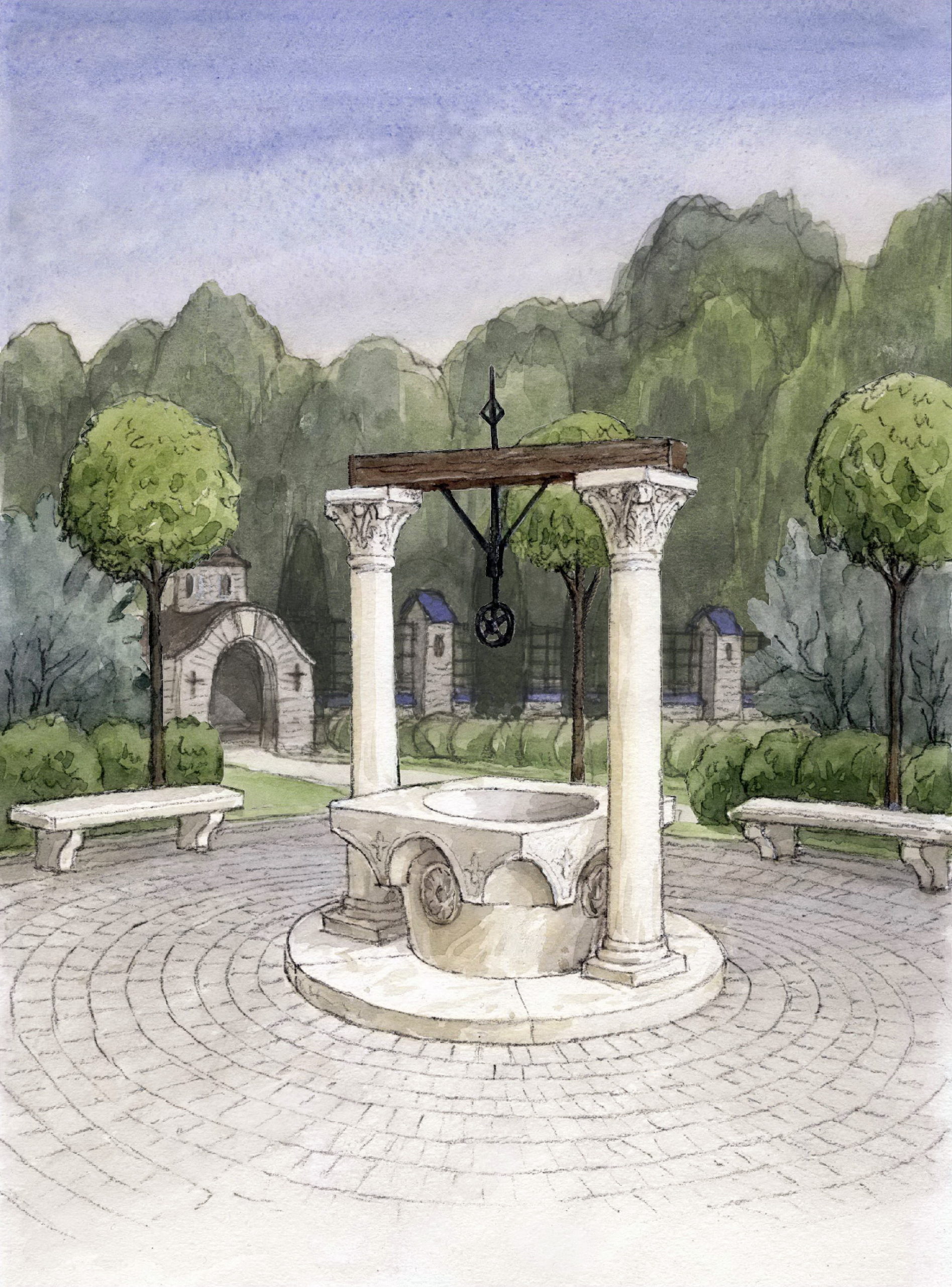 «Вода, текущая в жизнь вечную» — это благодать Божия. Добрая сила Творца, которая очищает, освящает, помогает нам. Чтобы получить ее, мы молимся, участвуем в Таинствах церкви. Об этой благодати и напоминает каждом христианину Колодец Самарянки. Он выполнен из натурального камня по образцу старинных колодцев Средиземноморья и украшен резьбой. Колодец занял свое место рядом с храмом Покрова в Гефсиманском саду среди 12 кленов, символизирующих апостолов.