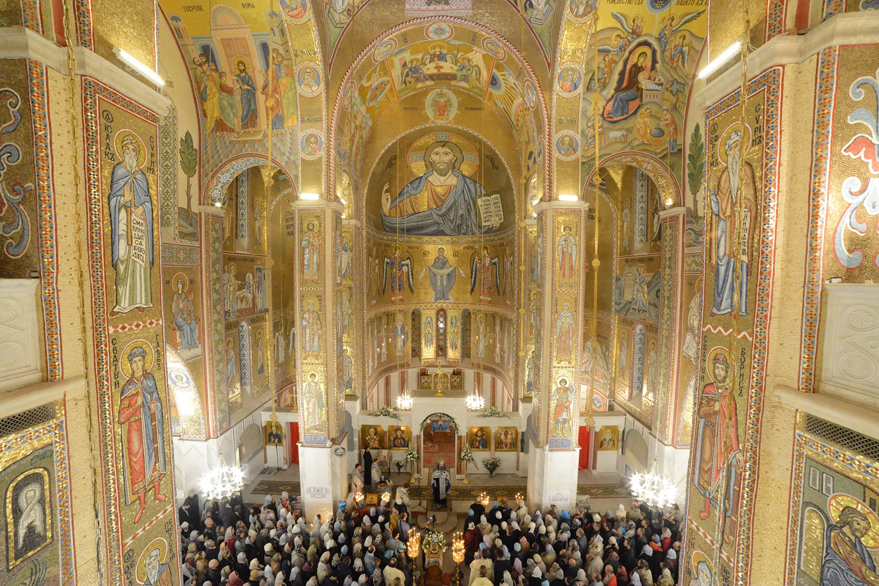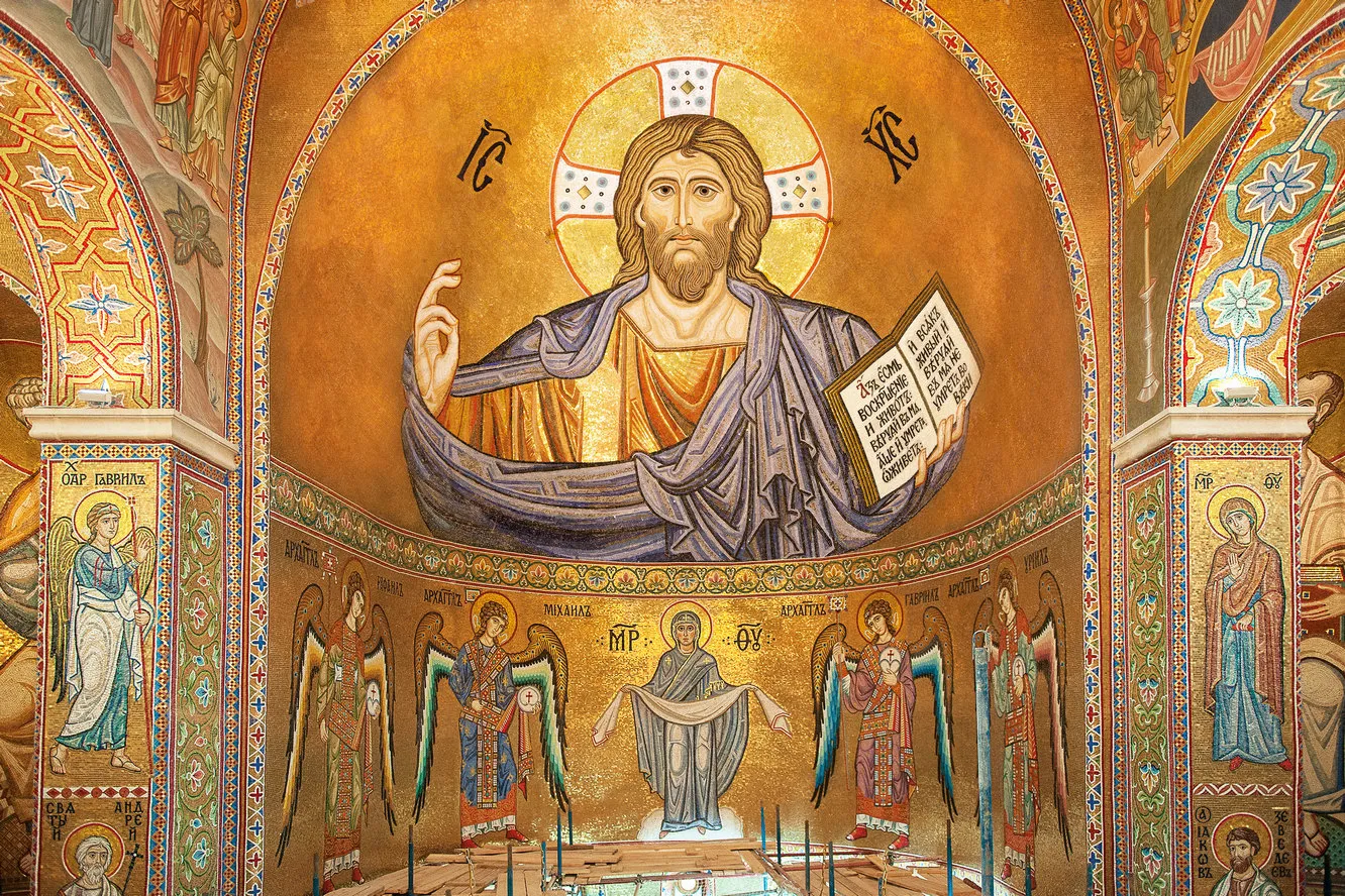 Сочетание мозаик и фресок традиционно для Руси, где оно применялось в храмах домонгольского периода, украшавшихся византийскими художниками. Мозаики покрывают самые сакрально значимые зоны храма: купол, апсиды, полуциркульные своды, рукава креста, боковые стены, столпы. Убранство храма включает резную мраморную алтарную преграду и облицовку нижних зон стен мрамором, что характерно для византийской традиции. Общая площадь мозаик храма – 2500 квадратных метров.