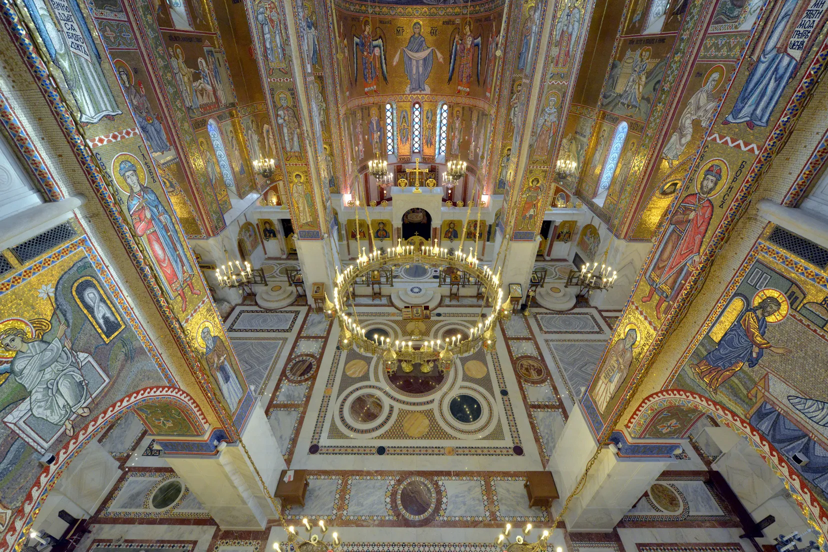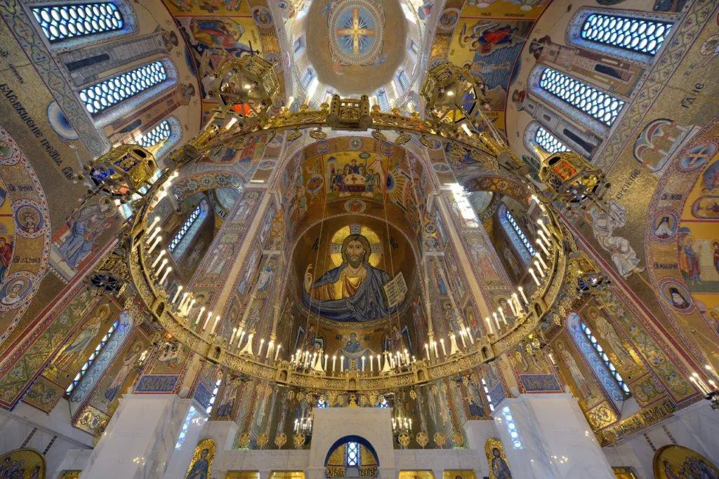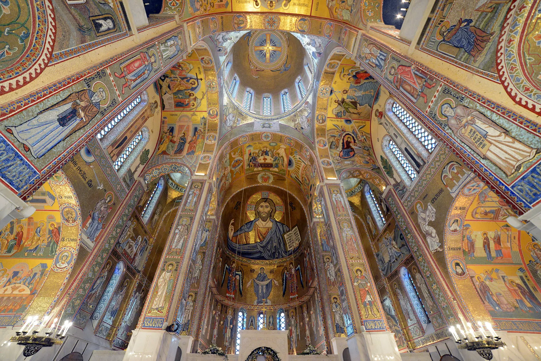 Храм, стены которого полностью выложены мозаикой, — мечта всех церковных художников-монументалистов. В декорации верхнего храма использованы две традиционные техники: мозаика и роспись.