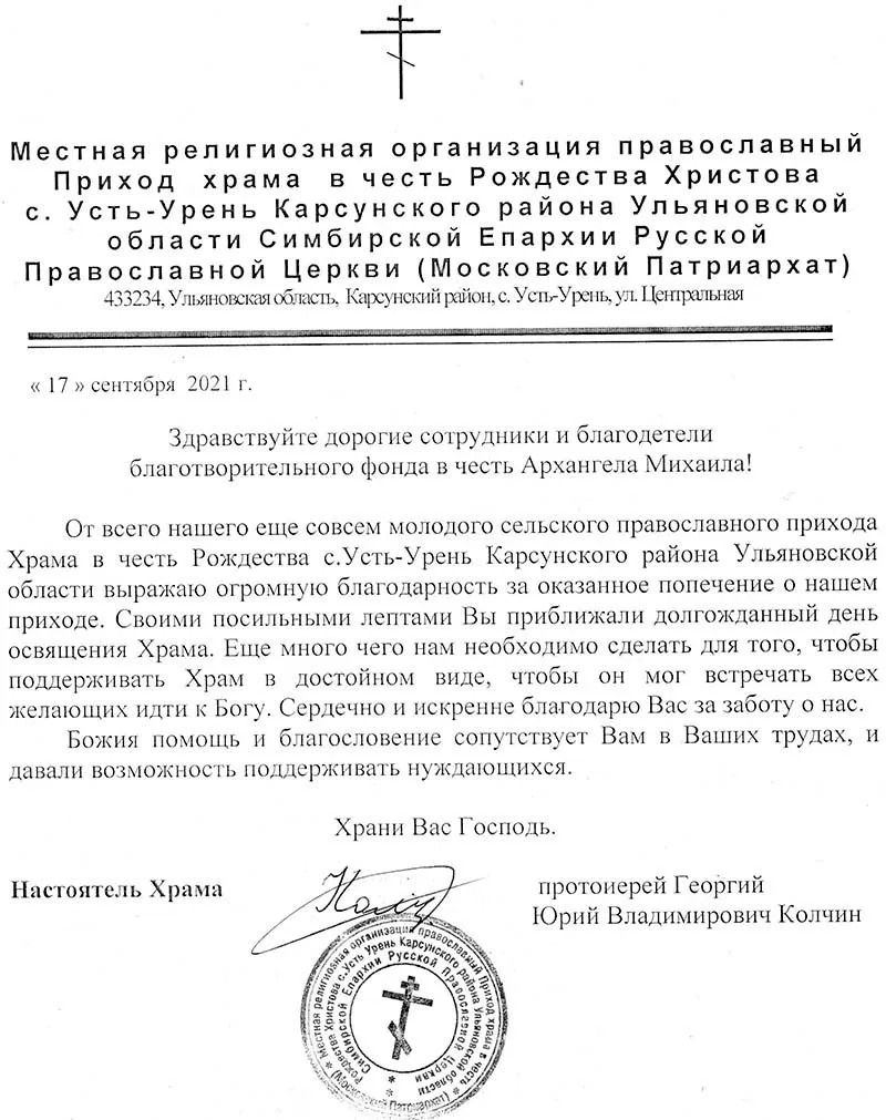 БЛАГОТВОРИТЕЛЬНЫЙ ФОНД СОДЕЙСТВИЯ СТРОИТЕЛЬСТВУ И РЕКОНСТРУКЦИИ ХРАМОВ ВО ИМЯ СВЯТОГО АРХАНГЕЛА МИХАИЛА