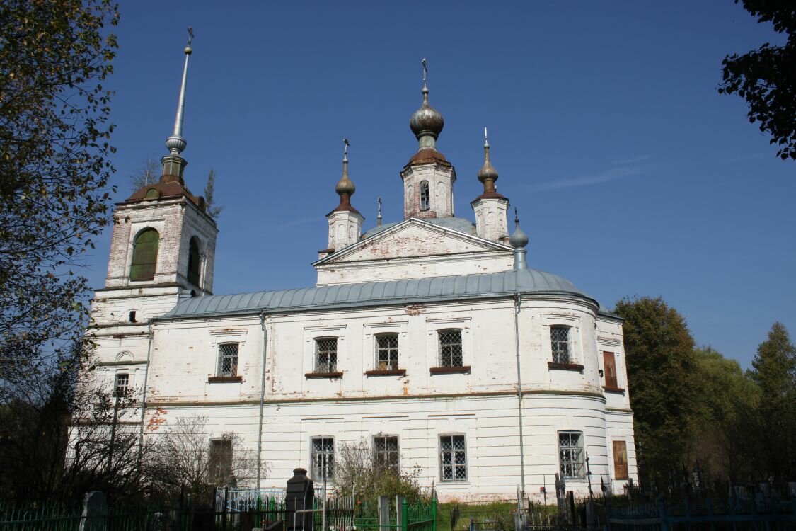 зажиточных крестьянских сыновей катали крестьянских девушек, разрумяненных и разодетых в шелковые платья, на собственных сотенных лошадях, в тарантасиках. И это все хлебопашцы, серповники и угольники! Нынешний каменный храм построен на месте сгоревшего когда-то деревянного храма. Время построения его, по всей вероятности, относится к началу текущего столетия, судя по антиминсам, на коих значатся 1818 и 1821 гг.» (Владимирские епархиальные ведомости. 1886, № 14).