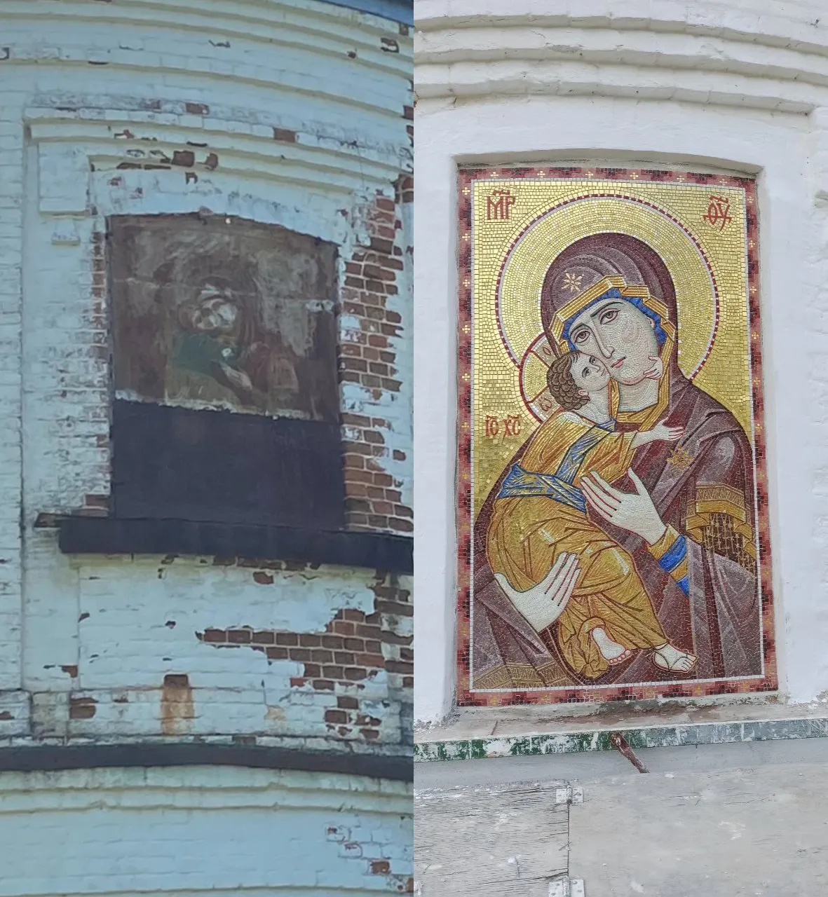 Планируется, что церковные фасады украсят четыре мозаики: святителя Николая Чудотворца и Владимирской иконы Божией Матери, на которые мы уже собрали, а также Покрова Пресвятой Богородицы и великомученицы Варвары.