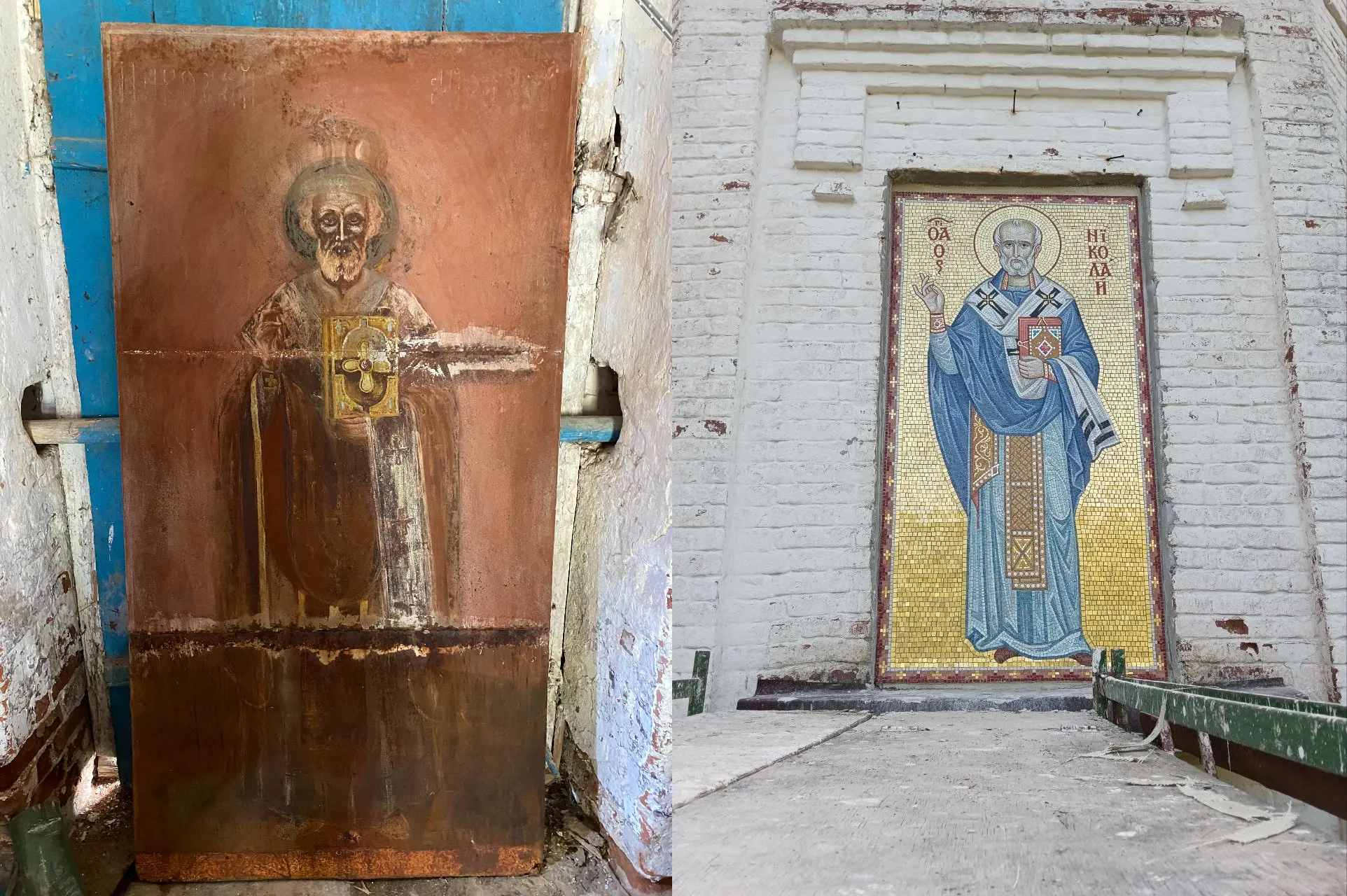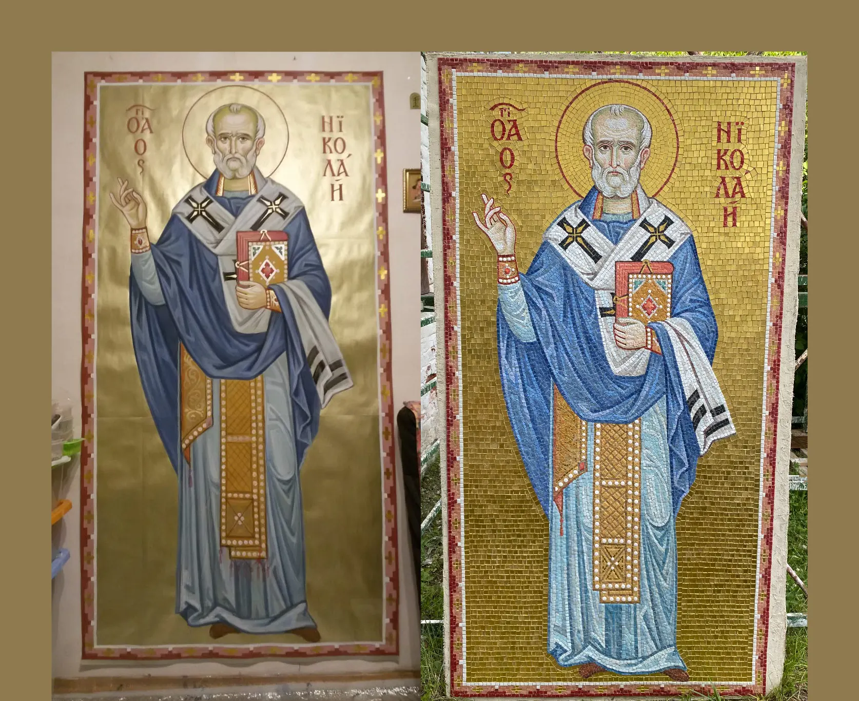 Наш Фонд собрал средства на создание двух мозаичных икон, которые украсят фасад храма. На первом этапе помощи – на образ святителя Николая Чудотворца, на втором – на икону Пресвятой Богородицы «Владимирская». Святые лики будут встречать всех приходящих и проезжающих мимо храма.