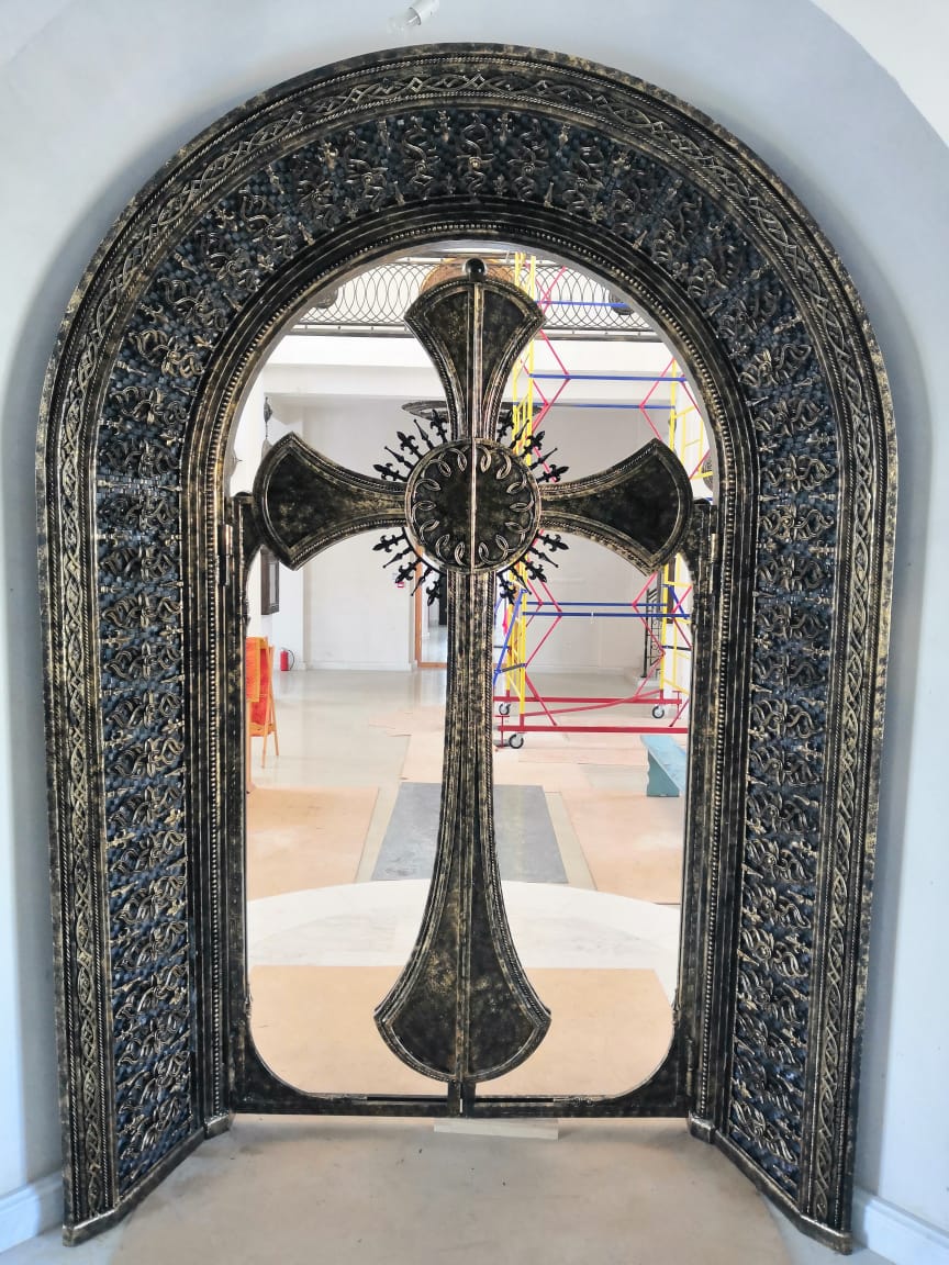 Затем перед нами встала задача собрать средства на написание композиции «Благовещение» на Царские врата. Это две ростовых иконы: образы юной Пречистой Девы и Архангела Гавриила, сообщающего Ей Благую весть – что Она станет Матерью Божией. Царские врата Никольского храма очень красивы, обрамлены необычным басменным окладом в виде креста. Согласно проекту, на одной их створке должен был расположиться образ Архангела, на другой – Пресвятой Богородицы. Средства на эти иконы были собраны всем миром. Последнее пожертвование, которое завершило сбор, пришло как раз накануне праздника Благовещения!