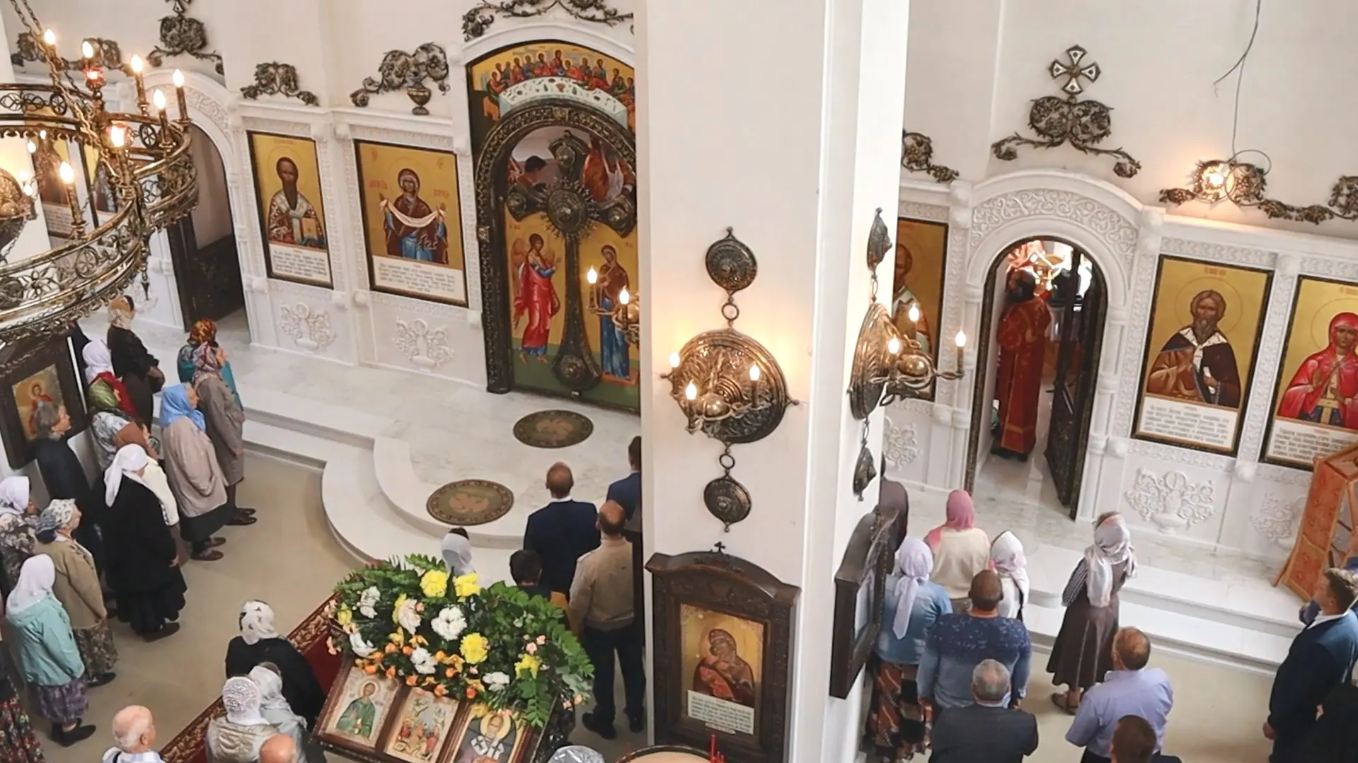 Обустройство верхней церкви Никольского храма продолжается. Неравнодушные люди, которых объединил Фонд Архангела Михаила, собрали средства на иконы композиции «Деисис» (Моление) на Горнем месте алтаря – образы Пресвятой Богородицы и святителя Николая, а также святого Иоанна Предтечи и святителя Спиридона. Эти иконы расположены по сторонам от образа Воскресения Христова. Богоматерь и святые изображены стоящими перед Господом, молящимися Ему о людях.