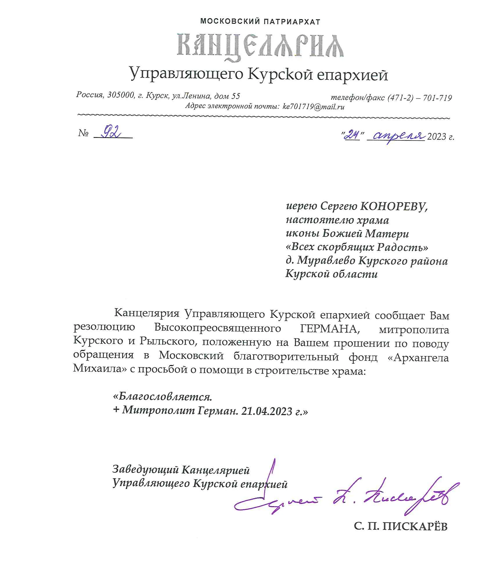 БЛАГОТВОРИТЕЛЬНЫЙ ФОНД СОДЕЙСТВИЯ СТРОИТЕЛЬСТВУ И РЕКОНСТРУКЦИИ ХРАМОВ ВО ИМЯ СВЯТОГО АРХАНГЕЛА МИХАИЛА (Председатель Cовета учредителей: Гончаров Павел Игоревич),