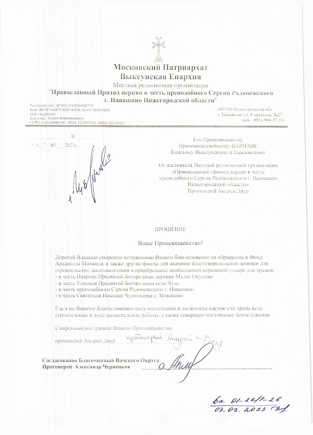 БЛАГОТВОРИТЕЛЬНЫЙ ФОНД СОДЕЙСТВИЯ СТРОИТЕЛЬСТВУ И РЕКОНСТРУКЦИИ ХРАМОВ ВО ИМЯ СВЯТОГО АРХАНГЕЛА МИХАИЛА