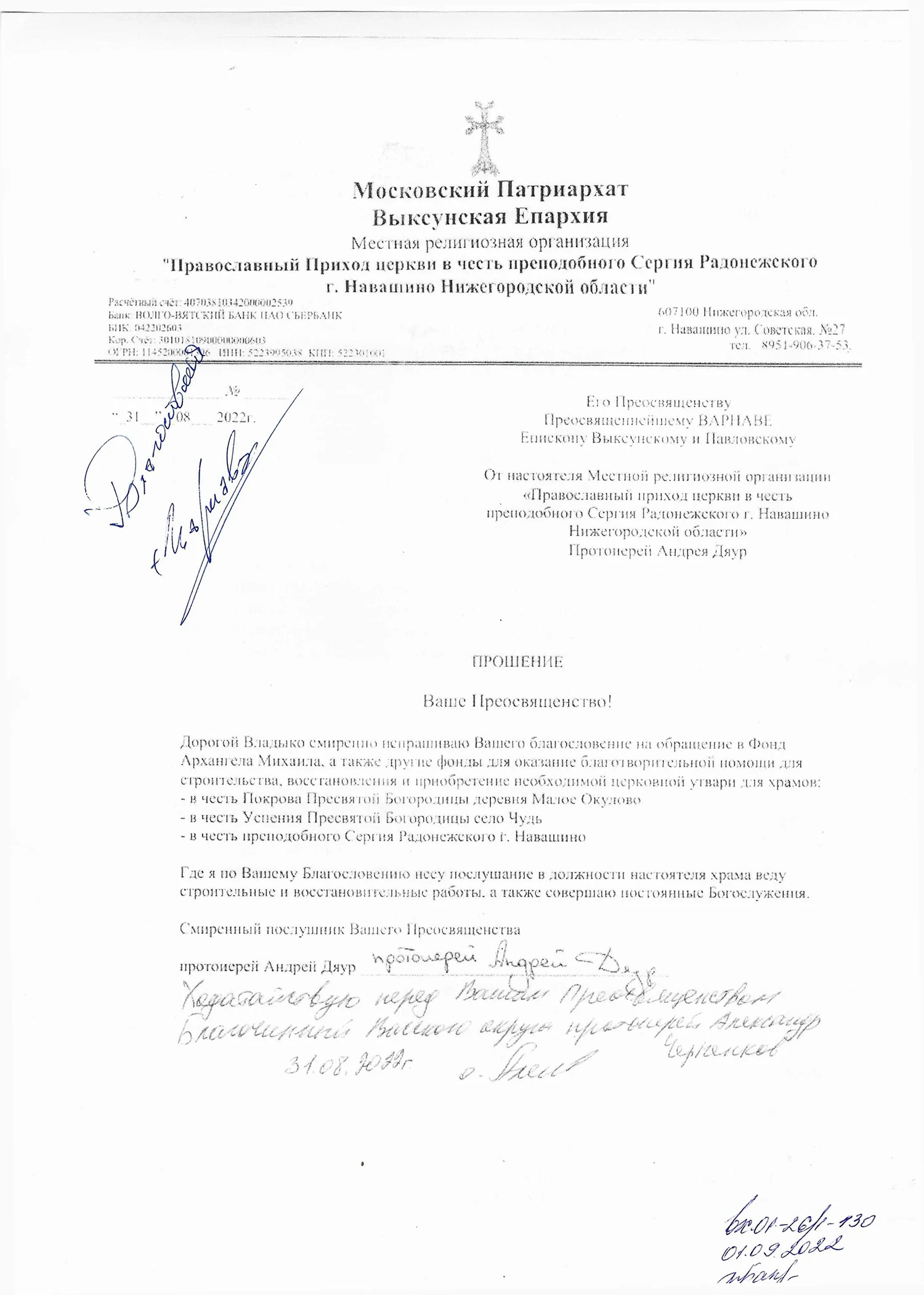 Цель сбора: приобретение церковной утвари