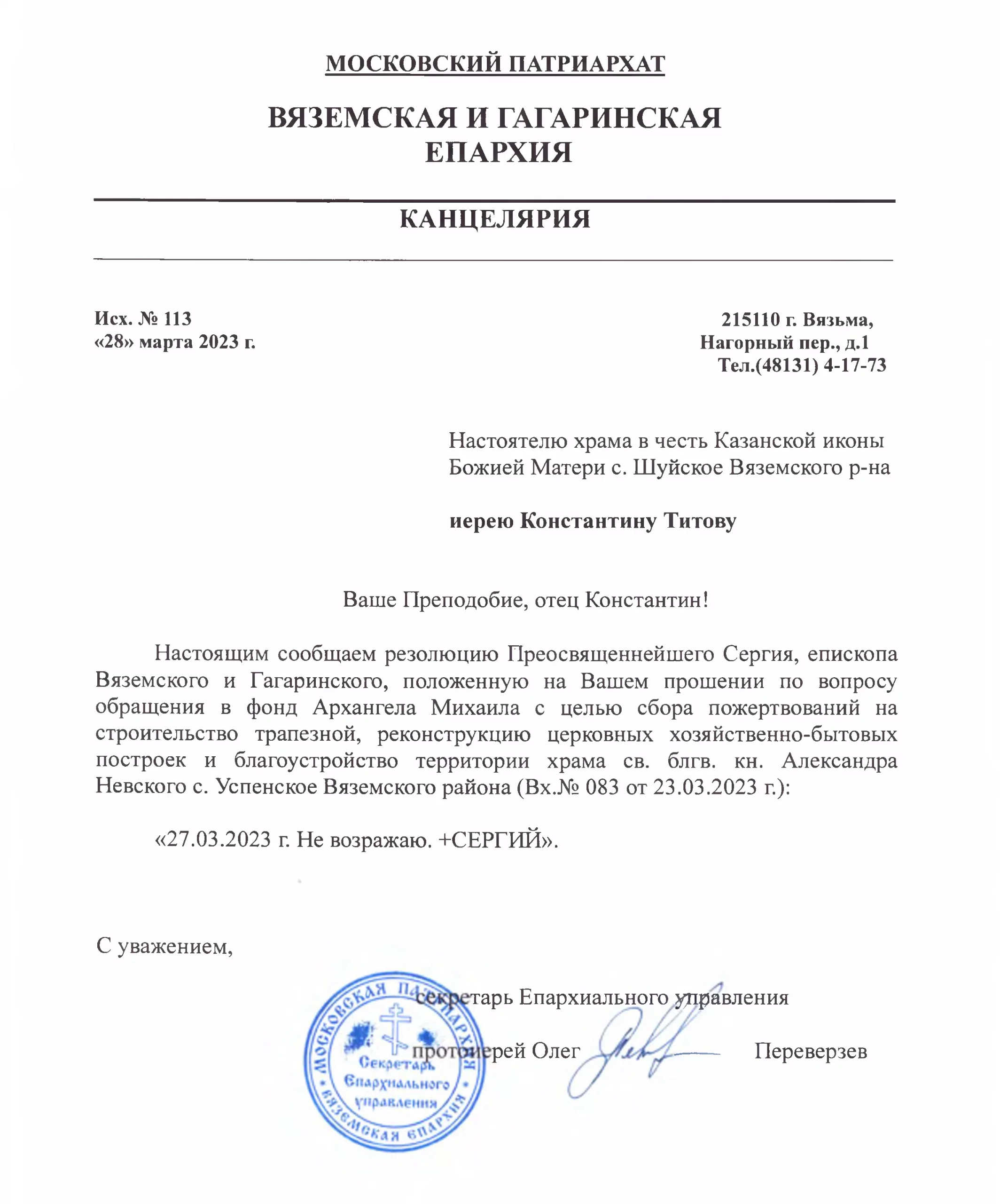 БЛАГОТВОРИТЕЛЬНЫЙ ФОНД СОДЕЙСТВИЯ СТРОИТЕЛЬСТВУ И РЕКОНСТРУКЦИИ ХРАМОВ ВО ИМЯ СВЯТОГО АРХАНГЕЛА МИХАИЛА (Председатель Cовета учредителей: Гончаров Павел Игоревич),