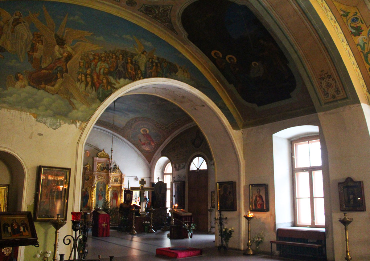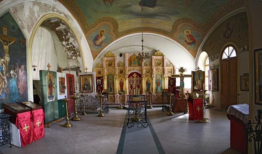 Храм св. Ирины был богато украшен древними святынями. В его иконостасах находилось немало старинных образов, украшенных серебряными ризами. В частности, в иконостасе Ирининского придела находилось 14 икон XVII века. Резные Царские врата украшали 6 икон того же столетия. В трапезной на стенах были иконы XVII-XVIII веков. Перед образами теплилось более пятидесяти серебряных лампад.