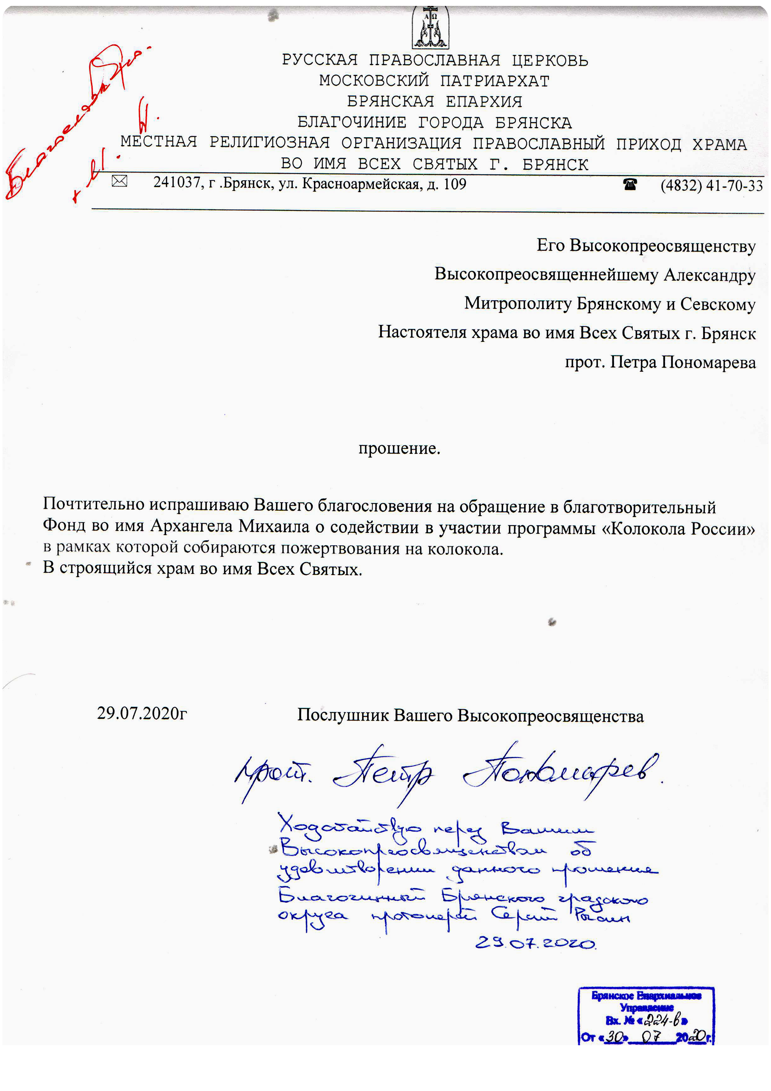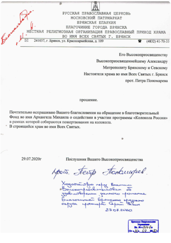 Приход храма во имя Всех Святых обратился в Фонд Архангела Михаила за помощью в сборе средств на приобретение колоколов и получил эту помощь. Благодаря неравнодушным людям необходимая сумма была собрана!