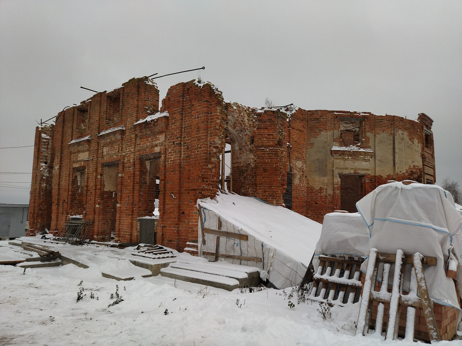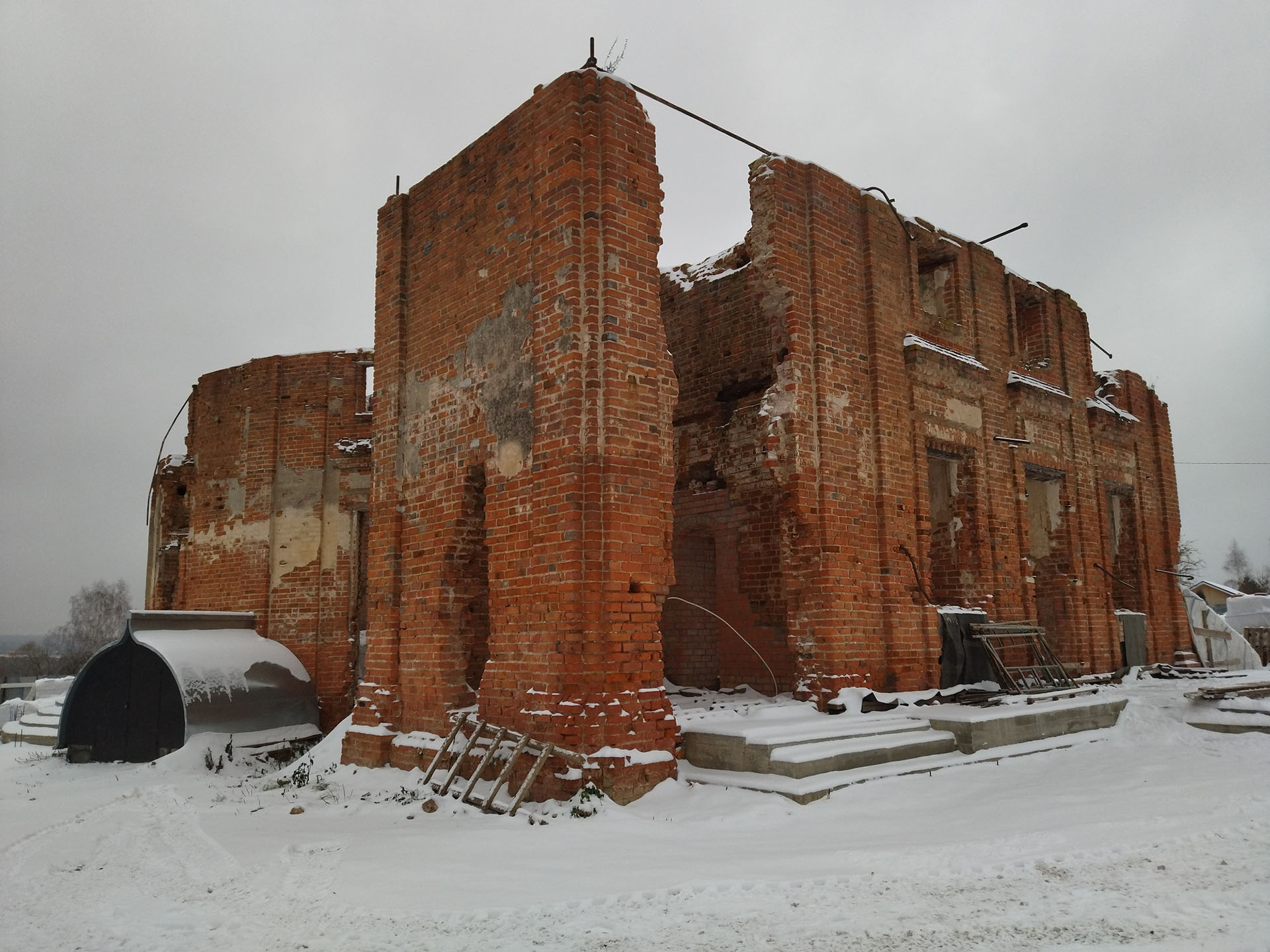 К сожалению, пока что от прекрасного некогда храма остаются только кирпичные стены. Рядом с ними усилиями верующих установлен крошечный строительный вагончик-молельня. Здесь совершаются молебны, сюда жители и гости поселка могут придти, чтобы затеплить свечу, помолиться.