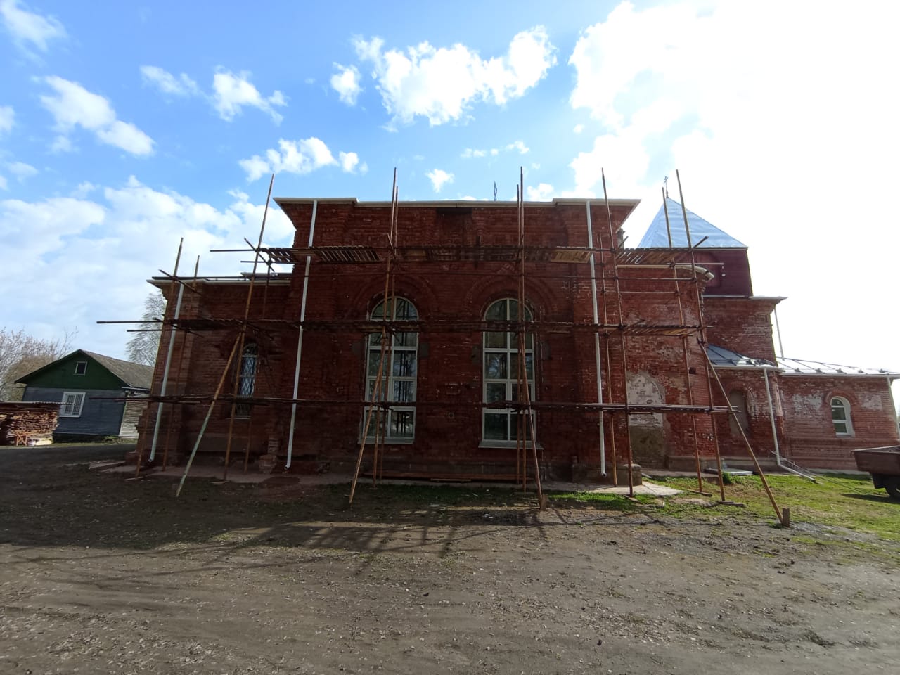 Мы помогаем возрождаться храму святых апостолов Петра и Павла в поселке Новописцово Ивановской области – и как же радостно видеть, как этап за этапом разрешаются казавшиеся неподъемными проблемы! Эта старинная церковь серьезно пострадала в годы официального безбожия: потеряла купол, колокольню. Мы помогаем возрождать ее практически из руин. Собрали средства на кирпич для реставрации свода центральной части церковного здания и реконструкции купола, затем – на реставрацию алтарной арки и свода.