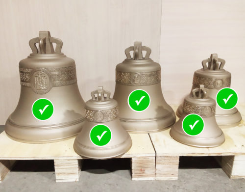 Фонд Архангела Михаила собрал средства на 5 колоколов для Свято-Никольского храма. Все они украшены одинаковым орнаментом, но каждый поет своим голосом. Вместе они составляют гармоничный ансамбль. На каждом из колоколов в медальоне будет изображен Спаситель, святой, или библейское событие.