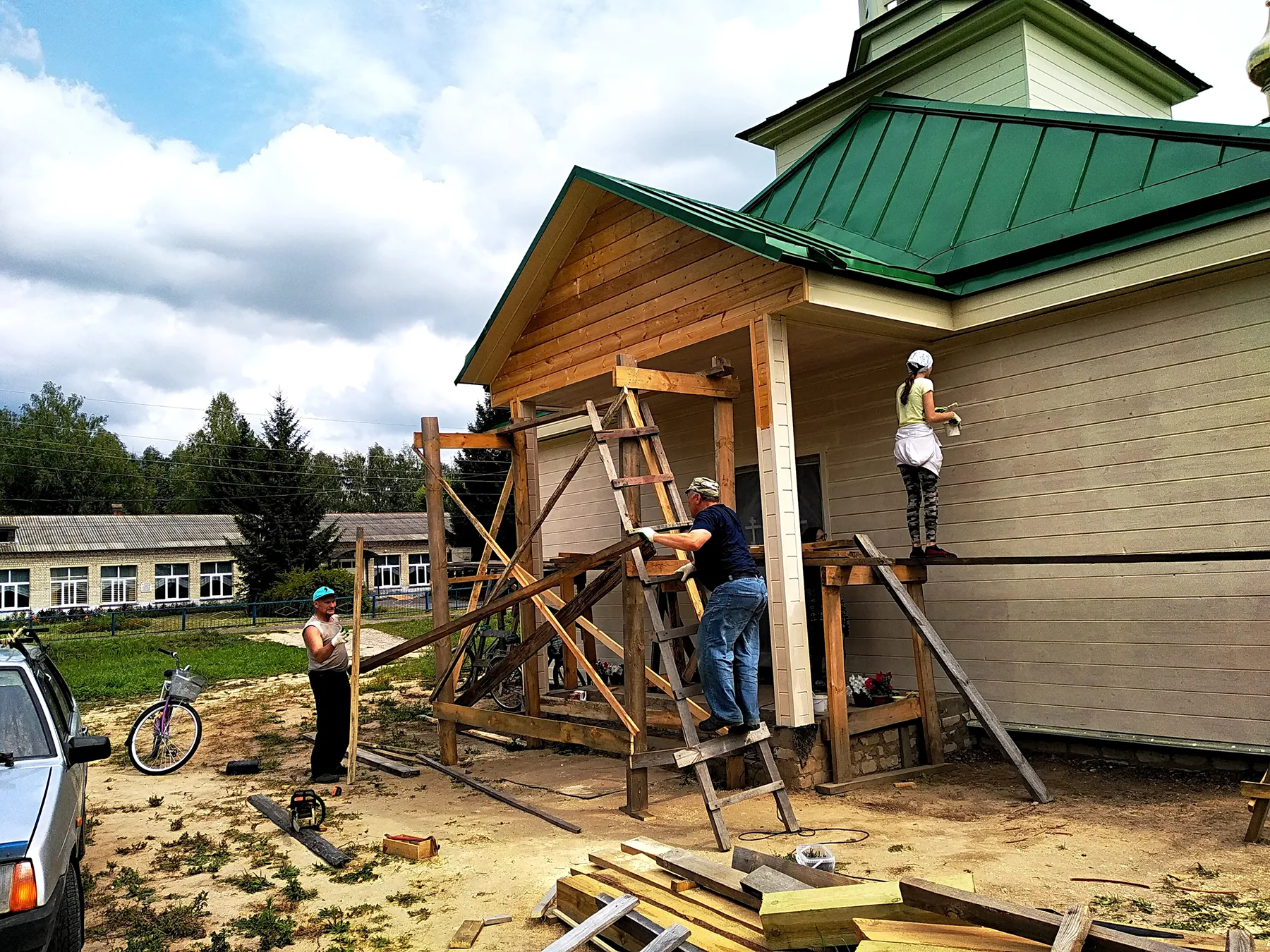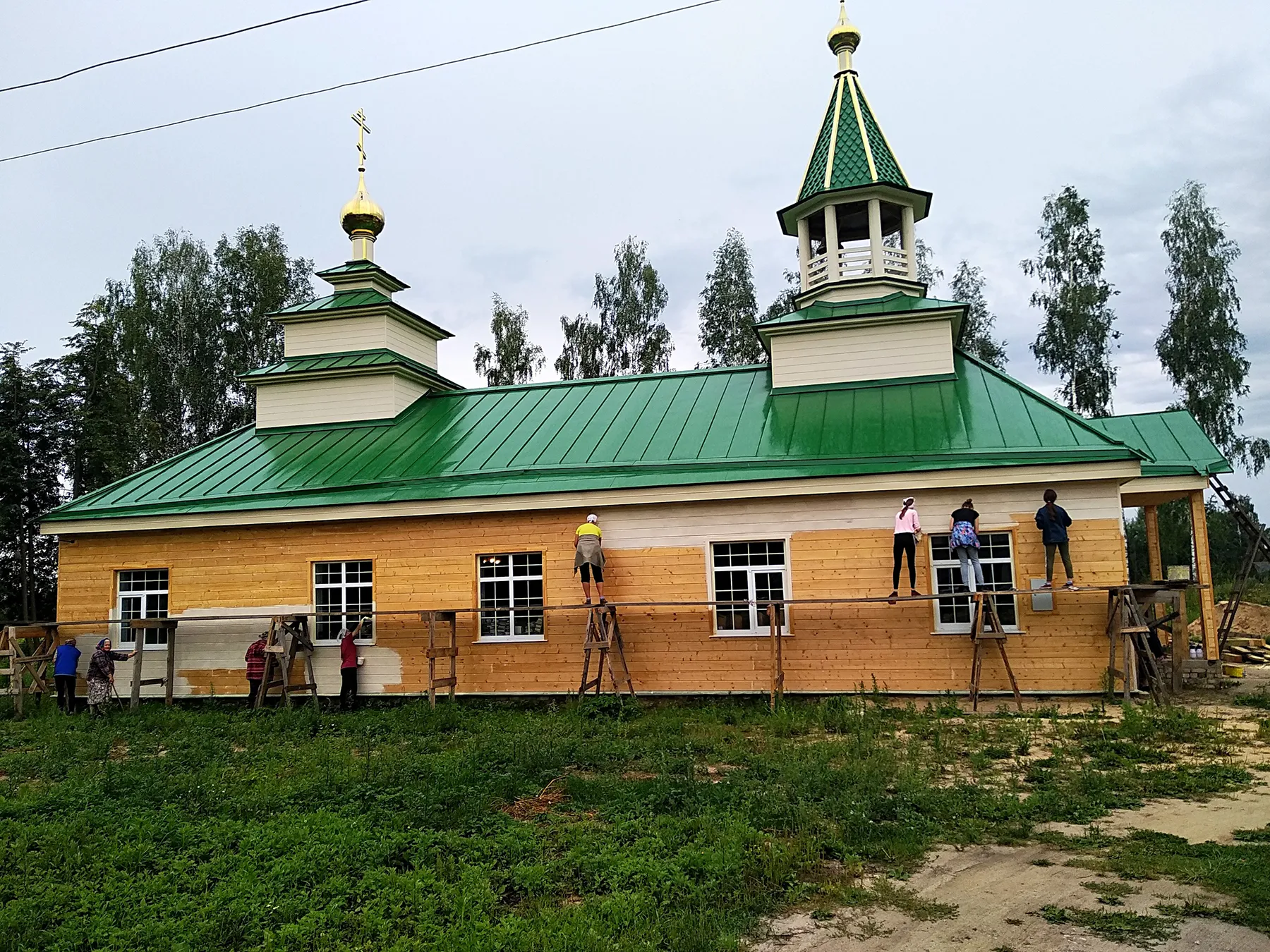 Храм находился в перестроенном светском здании. Стараниями батюшки и прихожан оно украсилось куполом и колокольней. Приходу удалось поменять кровлю, обшить стены деревом, установить резной иконостас. Приобрести колокола помог наш фонд.