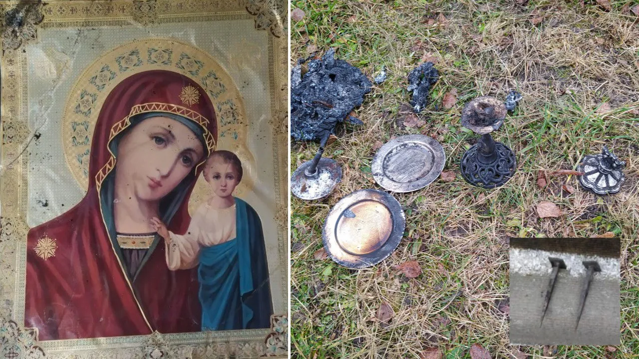 Батюшка и прихожане были поражены, обнаружив при разборе пожарища практически неповрежденные напрестольный крест, два гвоздя от престола и литургические тарели. Они сохранились, невзирая на то, что, как мы уже сказали, температуры горения не выдержали даже колокола! И уж совсем необъяснимо земными законами, что на пожарище была обретена практически нетронутая огнем икона Божией Матери «Казанская» напечатанная на картоне! Матерь Божия словно сказала людям: «Я с вами, не бойтесь!»