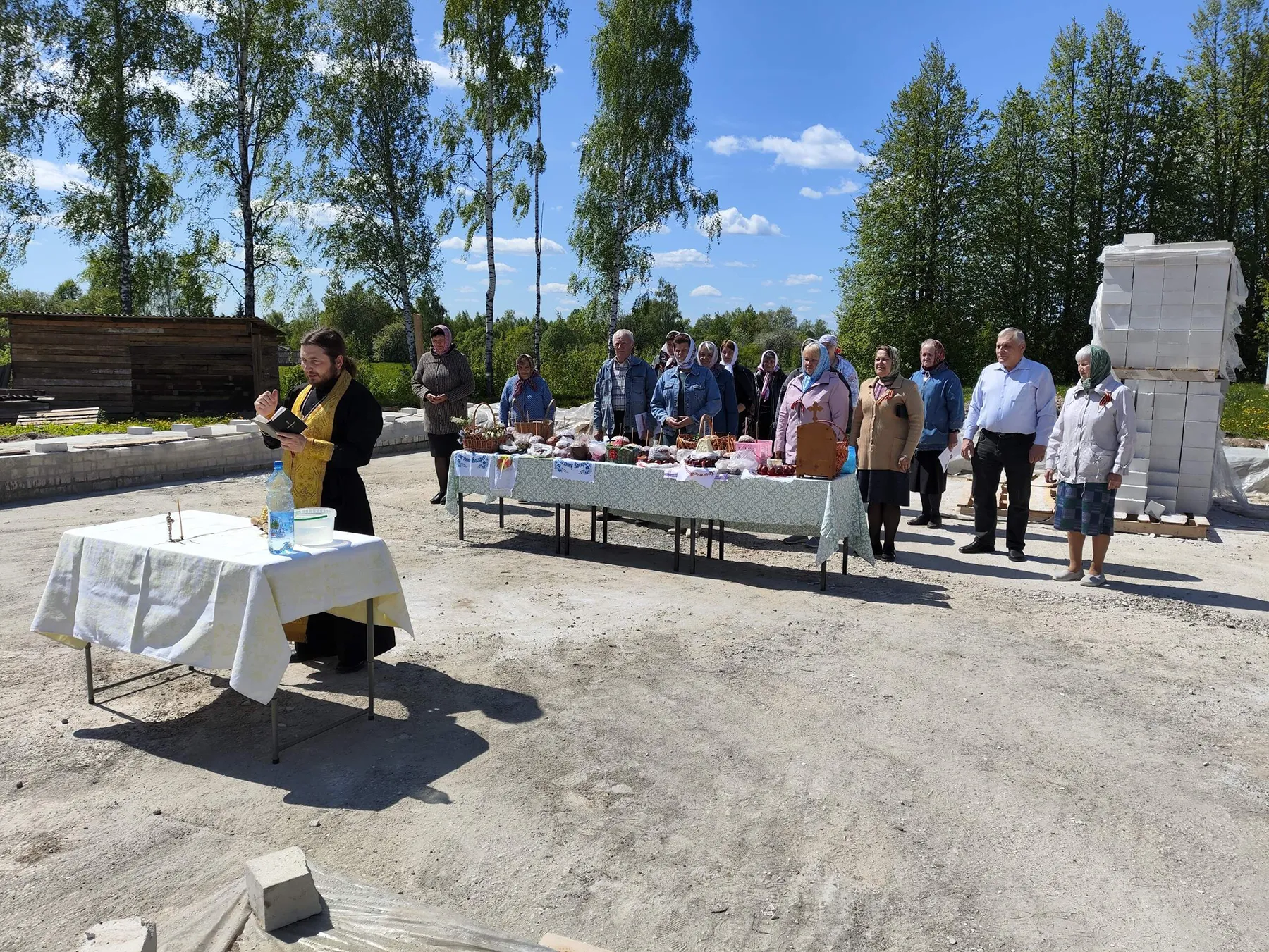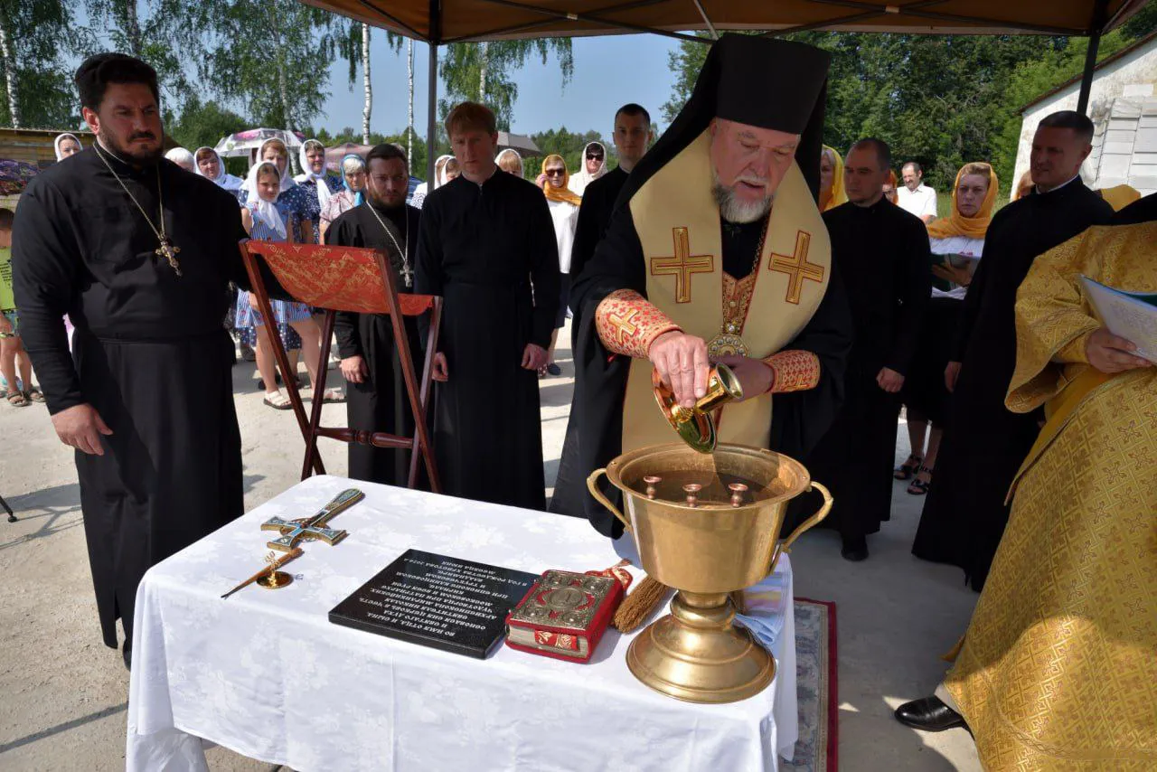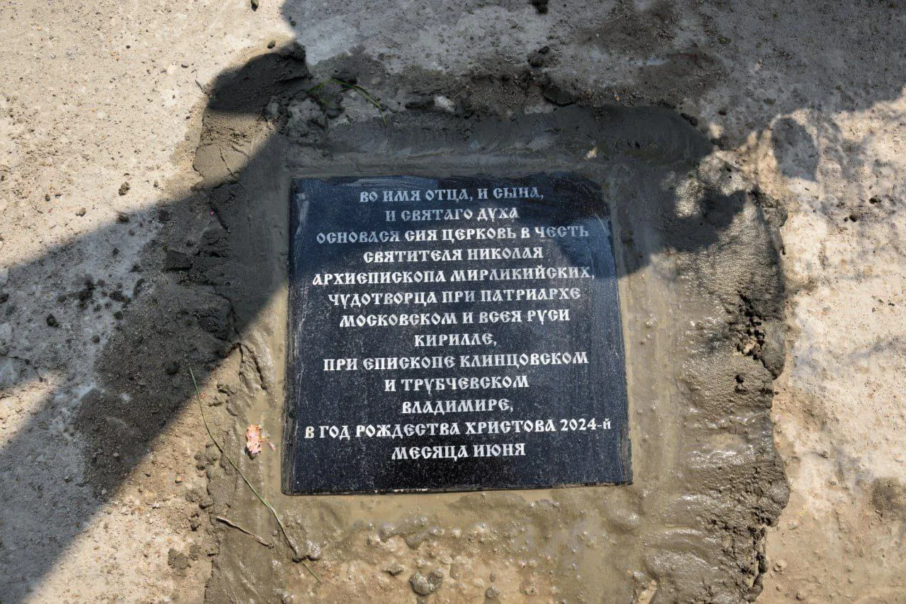 Воодушевленные этим, верующие приступили к строительству нового храма. Конечно, уже каменного, не столь подверженного огню. По милости Божией приходу удалось найти архитекторов, согласившихся безвозмездно создать проект. Уже в ноябре 2023 г. подрядная организация залила фундамент нового церковного здания, а в апреле 2024 г. строители возвели цоколь. И наконец, 30 июня 2024 г. епископ Клинцовский и Трубчевский Владимир освятил закладной камень в основание строящегося дома Божия.