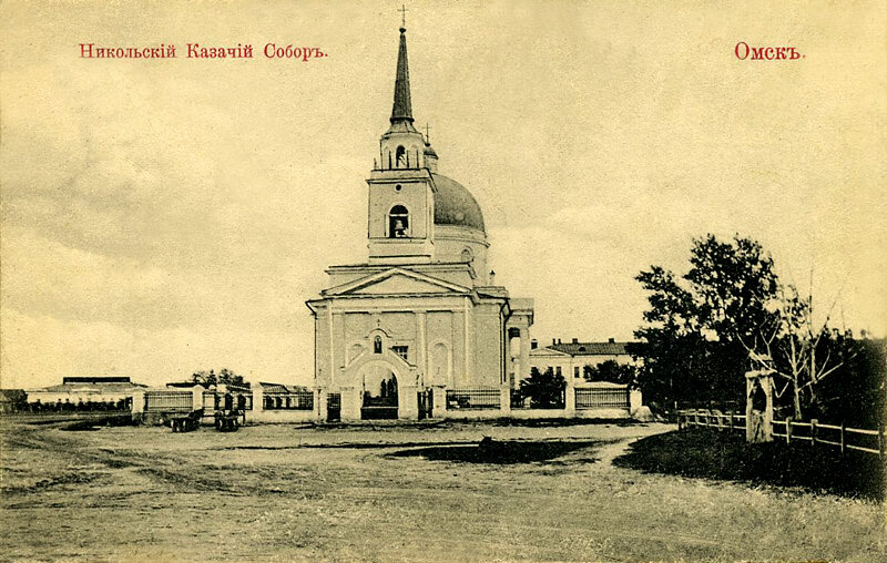 Никольский казачий собор – самый старый из храмов г. Омска. «Справочная книга Омской епархии» сообщает, что «Николаевская войсковая казачья церковь построена в 1838 г. иждивением Сибирского казачьего войска и старанием разных войсковых командиров; освящена в 1840 г. Зданием каменная, с таковою же, в одной связи, колокольнею, обнесена каменной оградой. Престолов три: главный – во имя св. и чуд. Николая, с южной стороны – во имя Симеона Богоприимца и Анны Пророчицы и с северной – во имя вмч. Георгия Победоносца».