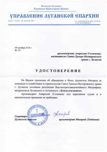 - Благословение Епархии на обращение в Фонд