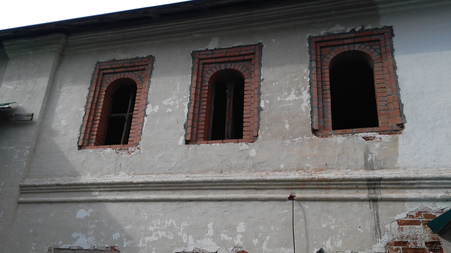 Окна Сергиевского храма и примыкающего корпуса были переделаны в советское время, а часть из них и вовсе претерпела разрушения. Осенью 2008 года одно из окон первого этажа корпуса, примыкающего к храму, было восстановлено в стиле XVII века. Перед нами встала задача помочь восстановить три окна, находящихся в самом храме. Интересная деталь: заказывать окна приходится в городе Северодвинск, в 192 километрах от обители – ближе производства необходимого уровня просто нет.