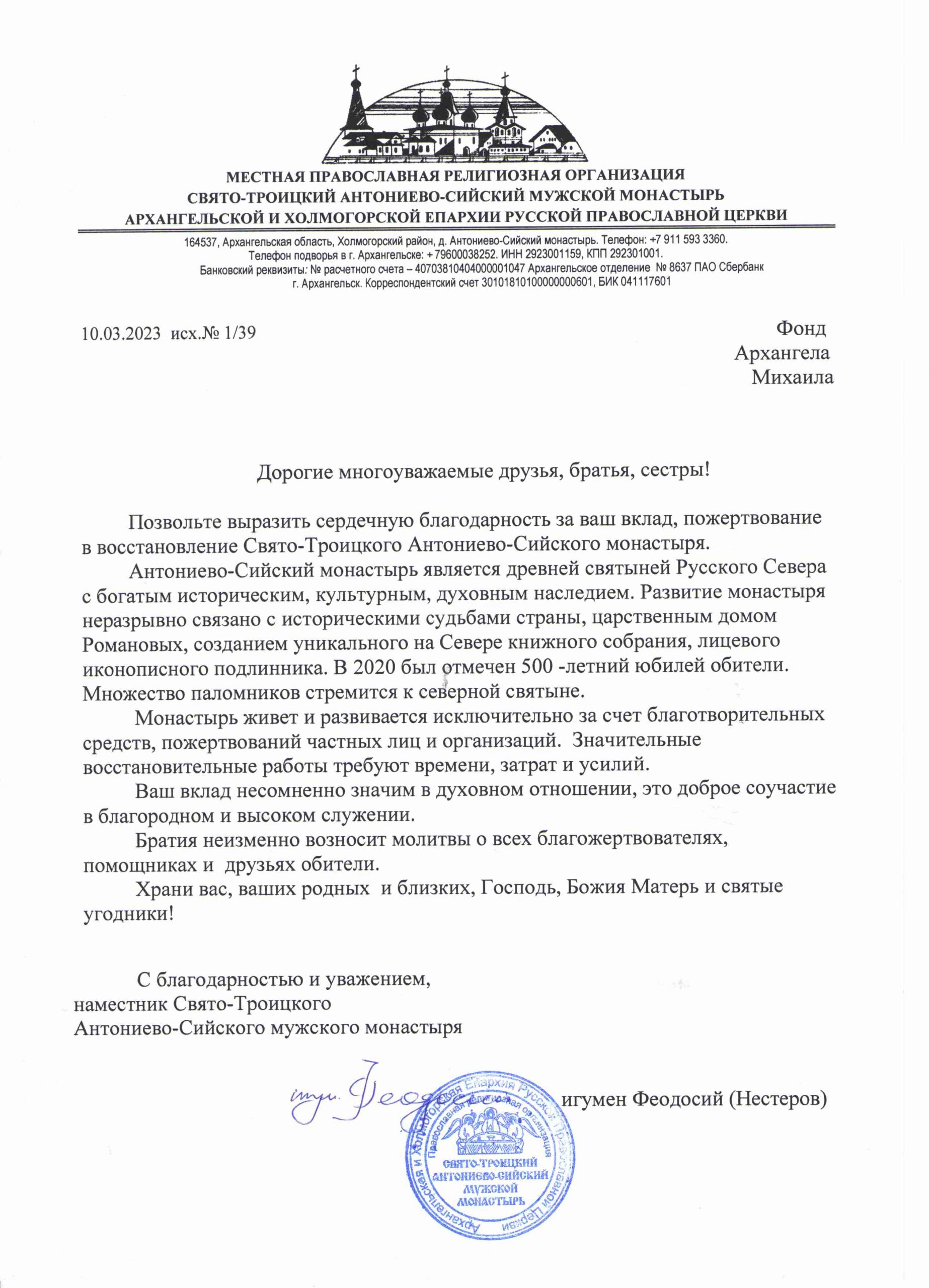 БЛАГОТВОРИТЕЛЬНЫЙ ФОНД СОДЕЙСТВИЯ СТРОИТЕЛЬСТВУ И РЕКОНСТРУКЦИИ ХРАМОВ ВО ИМЯ СВЯТОГО АРХАНГЕЛА МИХАИЛА