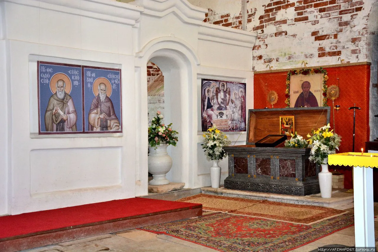 Здесь же находятся мощи преподобного Феодосия Сийского, совершавшего служение настоятеля этого монастыря в XVII веке. Он также почитается как местночтимый святой.