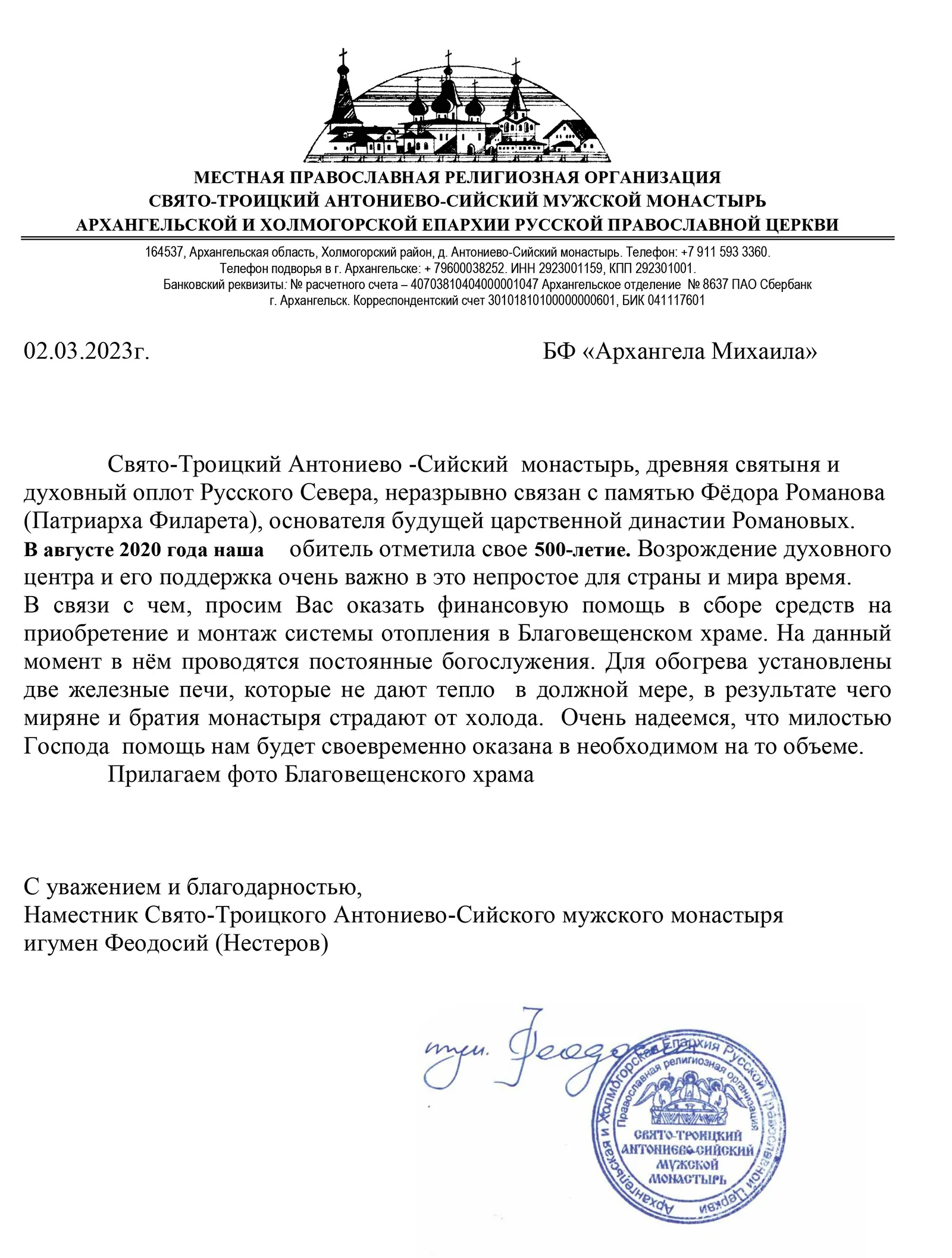Антониево-Сийский монастырь – святыня Русского Севера. Его архитектурный ансамбль сложился в XVII столетии. Мы с Вами помогли спасти от разрушения старинную Благовещенскую церковь обители – один из немногочисленных сохранившихся в мире шатровых храмов, а затем приняли участие в реставрации надвратного храма. И наконец, Наместник монастыря игумен Феодосий попросил нас помочь решить насущную проблему с отоплением Благовещенской церкви. И мы сделали это благодаря Вам, наши дорогие друзья!